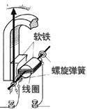 圆柱形铁芯的作用是在磁铁两极和铁芯间生成均匀地辐向分布的磁场。不管线圈转到什么角度,线圈平面都跟磁感线平行,线圈受到的安培力矩的大小只跟电流大小成正比。线圈绕在铝框上,线圈的两端分别和两个螺旋弹簧相接,被测电流由这两个弹簧流入线圈。铝框可以起到电磁阻尼的作用。指针偏转方向与电流方向有关。因此根据指针偏转方向,可以知道被测电流方向。