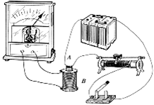 电键闭合和断开时、电键闭合后滑动变阻器的滑动触头移动过程中、电键闭合后线圈A在B中插入、拔出时,都会发现电流表指针发生偏转,说明有电流产生。而电键保持闭合、滑动触头不动、线圈A 在B中不动时,电流表指针都不动,说明无电流产生。