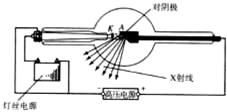 电子被高压加速后高速射向对阴极,从对阴极上激发出X射线。在K、A间是阴极射线即高速电子流,从A射出的是频率极高的电磁波,即X射线。