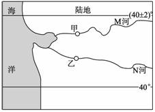 读右图, 观测发现,M、N河流的径流有明显的季节变化,回答17-18题。