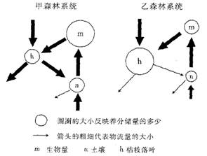 C.土壤中储存的养分少 D.系统整体的物流量大
