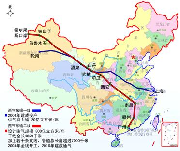 材料一 2008年初,世界最长的跨国天然气管道西气东输二线工程正式开工。该工程外连土库曼斯坦的中亚天然气管道,西起我国霍尔果斯,南至广州、深圳和香港,是世界上最长的跨国天然气管道,将国内外天然气输送到珠江三角洲、长江三角洲,为我国东部地区提供清洁能源,意义重大,影响深远。