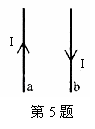 5. 如图所示,两根平行放置的长直导线a和b载有大小相同方向相反的电流,a受到的磁场力大小为F1,当加入一与导线所在平面垂直的匀强磁场后,a受到的磁场力大小变为F2,则此时b受到的磁场力大小变为 ( )