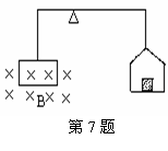 7. 如图,当左边的线圈通以逆时针电流I时,天平恰好平衡,此时天平右边的砝码为m,若改为顺时针方向的电流且大小不变,则需在天平右边增加△m的砝码,通电线圈受到磁场力大小为 ( )