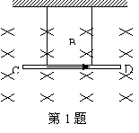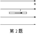 2. 一段通电的直导线平行于匀强磁场放入磁场中,如图所示导线上电流由左向右流过.当导线以左端点为轴在竖直平面内转过900的过程中,导线所受的安培力 ( )