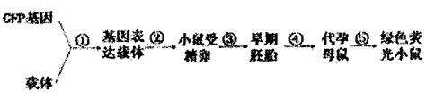 基因用于培育绿色荧光小鼠,下图表示培育绿色荧光小鼠的基本流程。下列对该实验