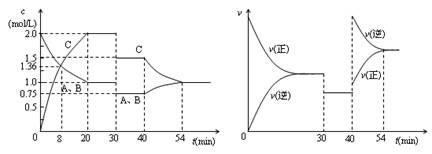 2C(g),达到平衡后,只改变反应的一个条件,测得容器中物质的浓度、反应速率随时间变化如下图所示。下列说法中正确的是