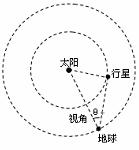 (8分)地球和某行星在同一轨道平面内同向绕太阳做匀速圆周运动。地球的轨道半径为R,运转周期为T。地球和太阳中心的连线与地球和行星的连线所夹的角叫地球对该行星的观察视角(简称视角)。当行星处于最大视角处时,是地球上的天文爱好者观察该行星的最佳时期。该行星的最大视角为θ,如图所示。求该行星的轨道半径和运转周期