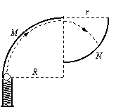 18.(10分)如图是为了检验某种防护罩承受冲击力的装置,M是半径为R=1.0m的固定于竖直平面内的1/4光滑圆弧轨道,轨道上端切线水平。N为待检验的固定曲面,该曲面在竖直面内的截面为半径