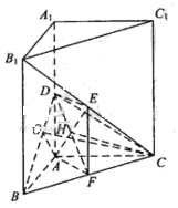 解析:本题考查线面垂直证明线面夹角的求法,第一问可取BC中点F,通过证明AF⊥平面BCC1,再证AF为BC的垂直平分线,第二问先作出线面夹角,即证四边形AFED是正方形可证平面DEF⊥平面BDC,从而找到线面夹角求解。此题两问也可建立空间直角坐标系利用向量法求解。