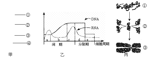 (4)乙图表明细胞分裂过程中核糖体功能较活跃的时期是 (填字母),这也说明在上述时期进行了大量