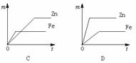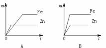 8.用相同质量的锌和铁分别跟足量稀盐酸反应,反应情况见图(横坐标t表示反应时间,纵坐标m表示生成氢气的质量),其中符合实际的是 ( )