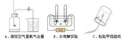 (4分)以下A、B、C三个实验都是我们已学习探究物质组成的实验: