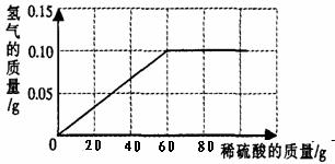 27.(8分)为了测定黄铜(铜、锌合金)的组成,某研究性学习小组称取该样品10g,向其中逐滴加入足量的稀硫酸。反应过程中生成的气体与所用硫酸溶液的质量关系如下图所示。则: