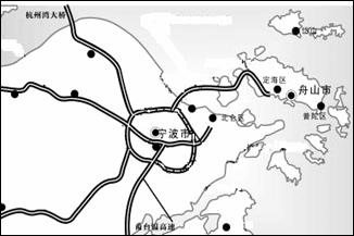 投资130亿元的浙江舟山跨海大桥于2009年12月25日试通车,舟山进入“半岛时代”,这座富裕的岛屿的生产力也将得到第二次大解放。读右图回答4-6题。
