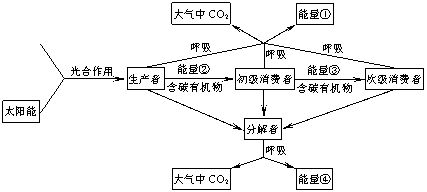 C.能量①②③④的总和便是生产者所固定的太阳能总量