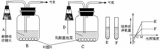 (3)C试管中叶片 ,其原因是因为D瓶中乳酸菌 。