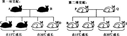 27.Ⅰ 在某类兔子中,毛色黑色与白色是一对相对性状,黑色为显性(W)、白色为隐性(w)。下图显示两项交配,亲代兔子A、B、P、Q均为在正常条件下(15℃)成长的纯合子。