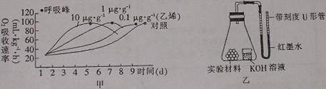吸速率上升的时间进程一致。某实验小组探究不同浓度的乙烯对果实呼吸作用的影响得