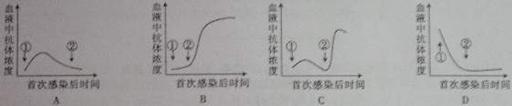 (2)能正确表示病毒侵入机体后,引起血液中抗体浓度变化的是(①表示第一次感染,②表示第二次感染)_______________。