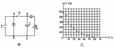 C.断开开关S,同时开始计时,每隔5s测读一次电流i的值,将测得数据填入表格,并标示在图乙的坐标纸上(时间t为横坐标,电流i为纵坐标),如图乙中小黑点所示.用光滑曲线把黑点连接起来就可画出i-t图线.