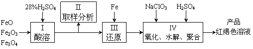 (2)步骤II取样分析溶液中Fe2+、Fe3+的含量,目的是 和确定氧化Fe2+所需NaClO3的量