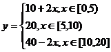 (2)季节性服饰在当季即将到来之时,价格呈上升趋势,设某服饰开始时定价为10元,并且每周(7天)涨价2元,5周后开始保持20元的价格平稳销售,10周后当季即将过去,平均每周削价2元,直到20周末该服饰不再销售。