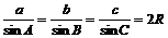 正弦定理:ΔABC的外接圆半径R,则![]()
