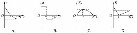 18. 如图所示,一质量为m的滑块以初速度v0自固定于地面的斜面底端A开始冲上斜面,到达某一高度后返回A,斜面与滑块之间有摩擦。下图分别表示滑块在斜面上运动的整个过程中速度v、加速度a、势能EP和机械能E随时间的变化图线,可能正确的是