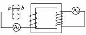 21. 如图所示,两条平行金属导轨竖直放置,其间有与导轨平面垂直的匀强磁场,金属棒ab沿导轨下滑,下滑过程中与导轨接触良好。金属棒、导轨、电流表A1和理想变压器原线圈构成闭合回路。金属棒ab在沿导轨下滑的过程中,电流表A1一直有示数,而电流表A2在某时刻之后示数变成了零,以下说法正确的是