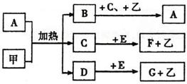 19.(8分)已知化合物A、B、C、D、E、F、G和单质甲、乙所含元素均为短周期元素,