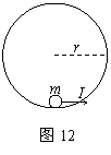 16. (10分)宇航员在月球表面完成下面实验:在一固定的竖直光滑圆弧轨道内部最低点静止一质量为m的小球(可视为质点)如图12所示,当施加给小球一瞬间水平冲量I时,刚好能使小球在竖直面内做完整圆周运动.已知圆弧轨道半径为