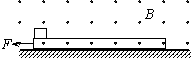 如图所示,空间有一垂直纸面向外的磁感应强度为0.5T的匀强磁场,一质量为0.2kg,且足够长的绝缘木板静止在光滑水平面上,在木板的左端无初速放置一质量为0.1kg,电荷量q=+0.2C的滑块,滑块与绝缘木板之间动摩擦因数为0.5,滑块受到的最大静摩擦力可认为等于滑动摩擦力。现对木板施加方向水平向左,大小为0.6N的恒力,g取10m/s2。则