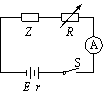 (3)把元件Z接入如图所示的电路中,当电阻R的阻值为R1=2Ω时,电流表的读数为1.25A;当电阻R的阻值为R2=3.6Ω时,电流表的读数为0.80A .结合上表数据,求出电池的电动势为 ▲ V,内阻为 ▲