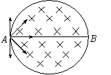 的圆,AB为圆的一直径.在A点有一粒子源向圆平面内的各个方向发射质量m、电量-q的粒子,粒子重力不计.