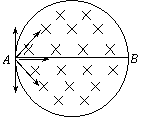 18.如图所示,一匀强磁场磁感应强度为B,方向向里,其边界是半径为R的圆,AB为圆的一条直径。在A点有一粒子源向圆平面内的各个方向发射质量m、电量-q的粒子,粒子重力不计。