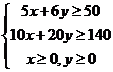 6.(2009山东卷文)某公司租赁甲、乙两种设备生产A,B两类产品,甲种设备每天能生产A类产品5件和B类产品10件,乙种设备每天能生产A类产品6件和B类产品20件.已知设备甲每天的租赁费为200元,设备乙每天的租赁费为300元,现该公司至少要生产A类产品50件,B类产品140件,所需租赁费最少为__________元.