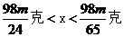 12、甲、乙两烧杯中分别盛有等体积、等溶质质量分数的H2SO4溶液。现向甲杯中加入m克Mg,向乙杯中加入m克Zn,充分反应后,有一只烧杯中仍有金属未溶解,则甲、乙烧杯中原有H2S04的溶质质量x应为