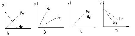 8.下列图象,横坐标x表示镁、铁的质量,纵坐标y表示生成氢气的质量,能代表等等质量镁、铁分别与足量的盐酸反应的图象是 ( )