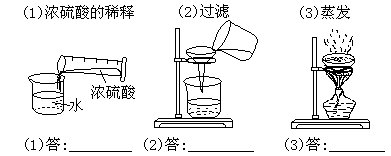 解析:考查倒入液体并稀释浓硫酸的操作及过滤、蒸发等操作。