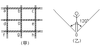下图为杂技表演的安全示意图,网绳的结构为正方形格,0,a,b,c,d……为网绳的结点,安全网水平张紧后,若质量为m的运动员从高处落下,并恰好落在0点上,该处下凹至最低点时,网绳doe、bog均成120°向上的张角,如图乙所示,此时0点受到的向下的冲击力大小为F,则这时0点周围每根网绳承受的力的大小为