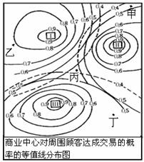 11.读图分析回答:下图中I、II、III三个同等规模商业中心若要在图上新布置一个同等规模的商业中心,则最佳位置是