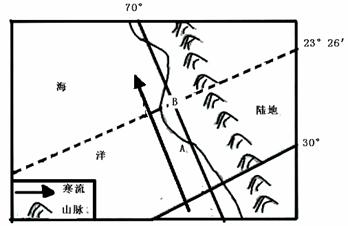 (2)若轮船沿该大洲西海岸并顺图示洋流航行,沿岸自然景观反映了 地域分异规律,B地自然景观主要是 ,其形态呈南北狭长的带状分布,主要原因是什么?(8分)