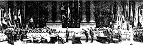 57.(2分)牢记历史,珍爱和平,开创未来,是和平发展的思想基础。军旅画家陈坚的油画作品《公元一千九百四十五年九月九日九时·南京》(见下图),以娴熟细腻的写实手法,表达了人类向往和平的愿望。作品之所以采用长卷式的横向构图,是因为 ( )