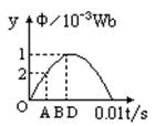单匝矩形线圈在匀强磁场中匀速转动,转轴垂直于磁场,若线圈所围面积内磁通量随时间变化的规律如图所示( )