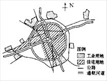 D.工业用地布置在住宅用地的四周,并沿通航河道与公路进行布置