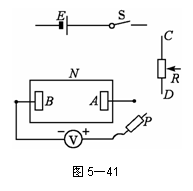 直流电压表V(量程为6V,内阻很大,其负接线柱与B极相连,正接线柱与探针P相连);
