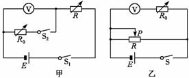 (1)为了用半偏法测量该电压表的内阻,某同学设计了两种电路,如图5-44甲、乙所示,要使测量较精确,应选择___________________(填“甲”或“乙”)电路.在器材的选择上,除了电池组、导线、开关和待测电压表外,还应从提供的器材中选用___________________________________(用器材前的序号字母表示).