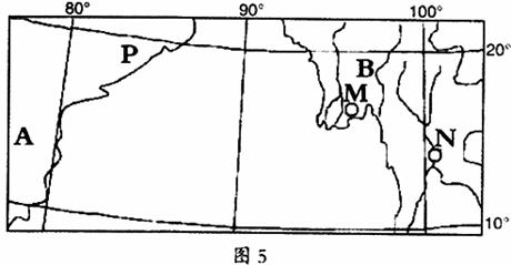 (2)图中M、N两城的年平均降水量分别是2681毫米和1498毫米,试分析其产生差异的原因。(6分)