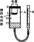 某研究性学习小组设计了如下图所示的装置,探究空气中氧气的体积分数,其中A是底面积为50cm2、高20 cm的圆筒状玻璃容器(带密封盖),上面标有以cm为单位的刻度,B是带刻度的敞口玻璃管(其他辅助装置略)。他们的操作过程如下: